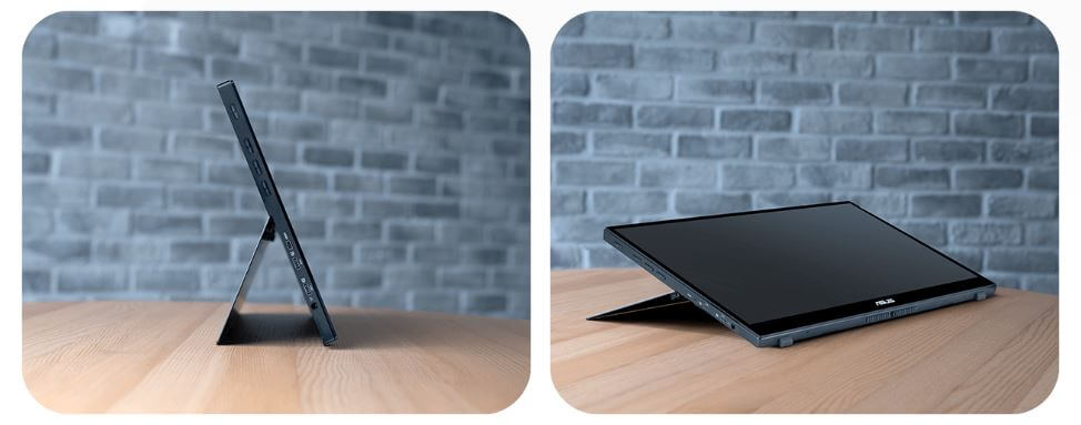 Встроенная подставка поддерживает как альбомный, так и портретный режимы. Шарнир имеет угол поворота до 150°, что делает его удобным в использовании и гибким для всех видов сенсорных и письменных сценариев. Также имеется встроенное гнездо для штатива, позволяющее поднимать и ориентировать ZenScreen Ink в любом положении.