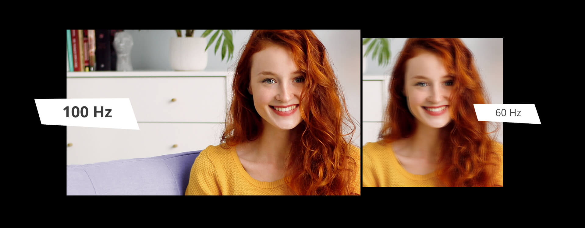 Частота смены кадров в два раза быстрее по сравнению с другими мониторами – забудьте о зависании изображения и размытом изображении. Благодаря частоте обновления 100 Гц каждый кадр будет четким, вы увидите сверхплавную последовательность кадров, а также сможете точно нанести удары противнику и оценить высокоскоростные гонки во все их красе.
