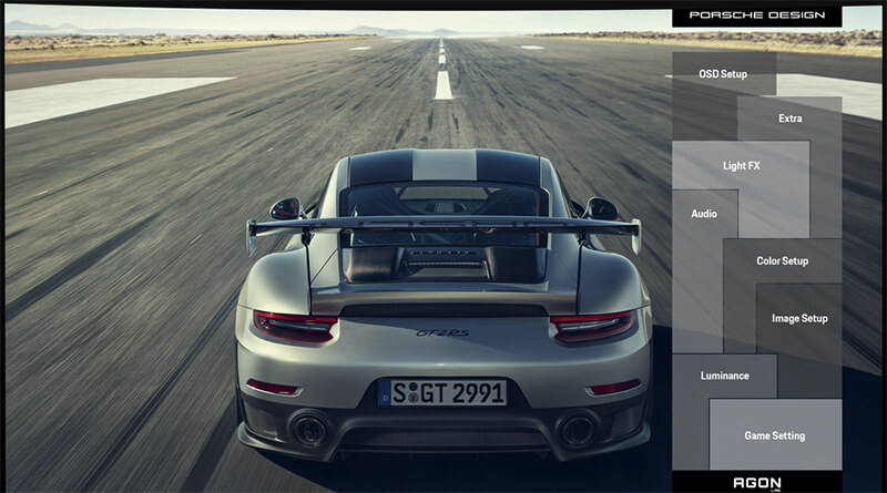 Рама монитора привлекает внимание к его задней части, тогда как переднюю часть выделяет световая полоса, которая меняет цвет в зависимости от ситуации в игре и проецирует на поверхность стола логотип Porsche Design или AGON.