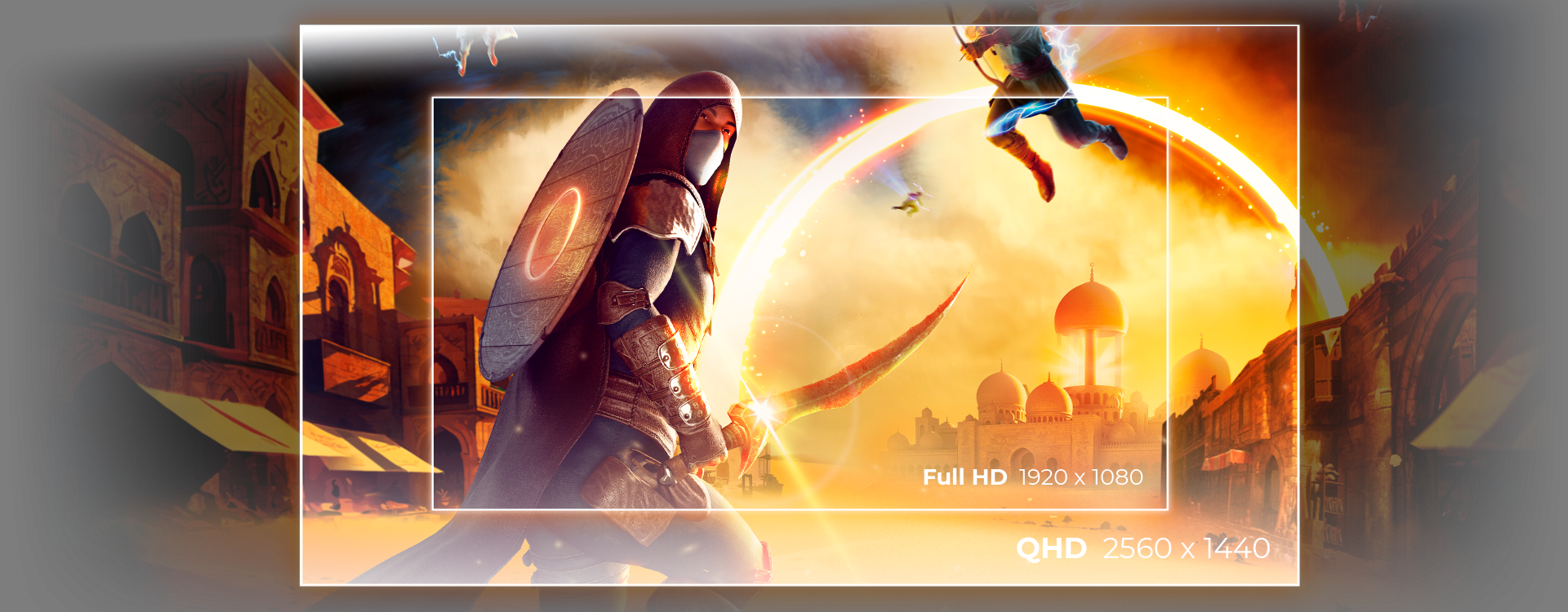 Благодаря разрешению 2560 x 1440, Quad HD (QHD), достигаются великолепные качество и четкость изображения, позволяющие увидеть мельчайшие детали. Соотношение сторон 16:9 широкого экрана обеспечивает большое пространство для работы и расположения окон, а также позволяет наслаждаться играми и фильмами в их исходном разрешении.
