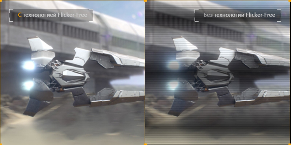 Технология Flicker-Free уменьшает мерцание, чтобы свести к минимуму нагрузку на глаза и повысить комфорт во время длительных игровых сессий.