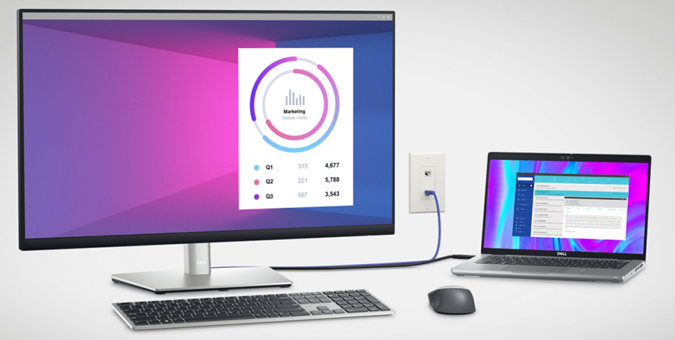Ваш монитор служит вашим собственным концентратором производительности с RJ45 для проводного подключения Ethernet и USB-C, обеспечивающим подачу питания до 90 Вт, и все это без помех.