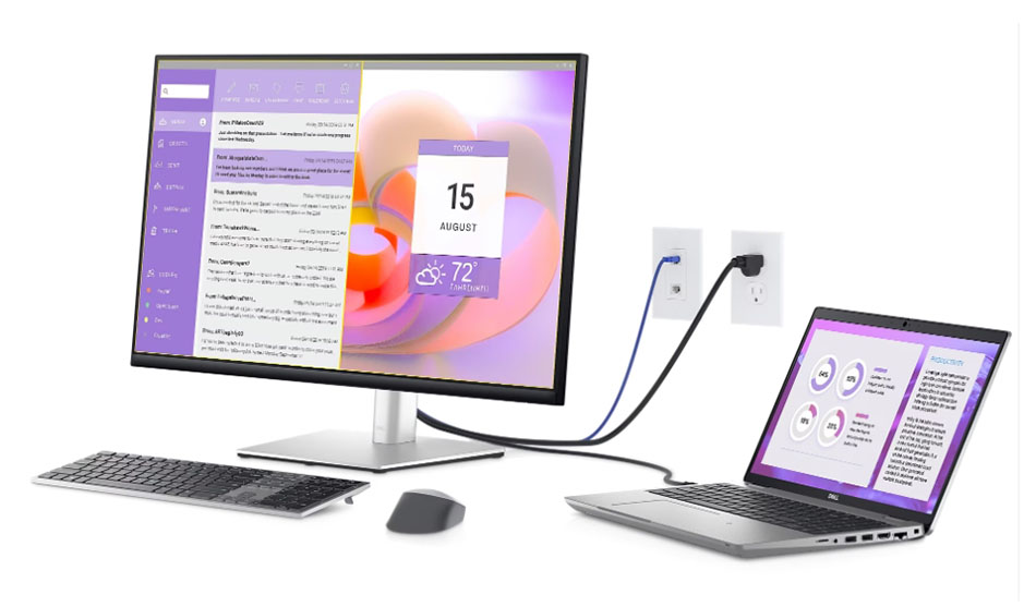 Ваш монитор служит вашим собственным концентратором производительности с RJ45 для проводного подключения Ethernet и USB-C, обеспечивающим подачу питания до 90 Вт, и все это без помех.