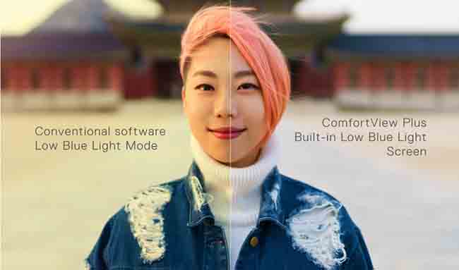 ComfortView Plus — постоянно включенный встроенный экран с низким уровнем синего света — уменьшает потенциально вредное излучение синего света без ущерба для цвета