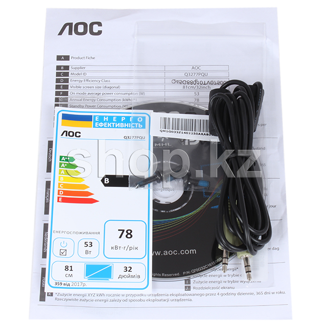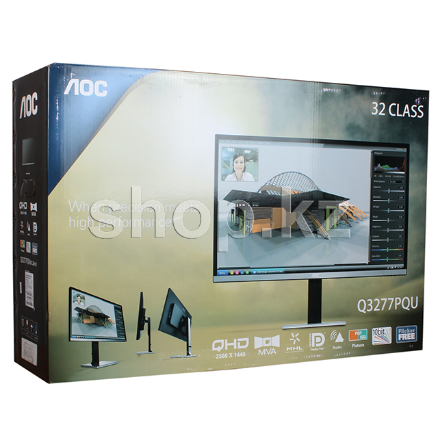 Талғампаз AOC Q3277PQU дисплейі өнімділікті жақсарту және жақсарту үшін дисплей технологиясының соңғы артықшылықтарын біріктіреді сурет сапасы. 16:9 арақатынасы бар 32 дюймдік үлкен дисплей сіздің жобаларыңызды толық қарау немесе бір экранда бірнеше бағдарламаны көрсету үшін өте қолайлы. MVA панелі оңтайландырылған кескін сапасын, кең көру бұрышын және түстердің дәл берілуін қамтамасыз етеді, ал 4 мс жауап беру уақыты тіпті ең талап етілетін қолданбаларды оңай басқаруға мүмкіндік береді. HDMI, DVI-D және DisplayPort сияқты көптеген қосқыштар компьютерді және басқа құрылғыларды қосуды жеңілдетеді. Кірістірілген динамиктер бейне қоңыраулар үшін қосымша ыңғайлылықты қамтамасыз етеді. Эргономикалық стенд кез-келген тапсырманы орындау үшін экранды еңкейтуге, бұруға және айналдыруға мүмкіндік береді.