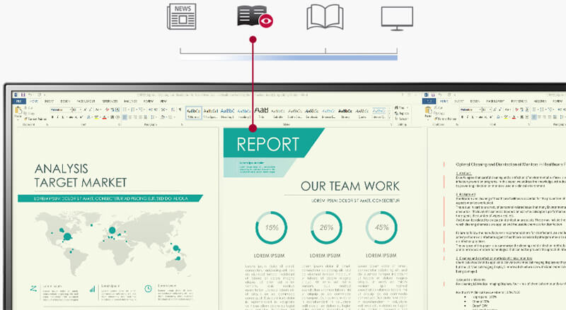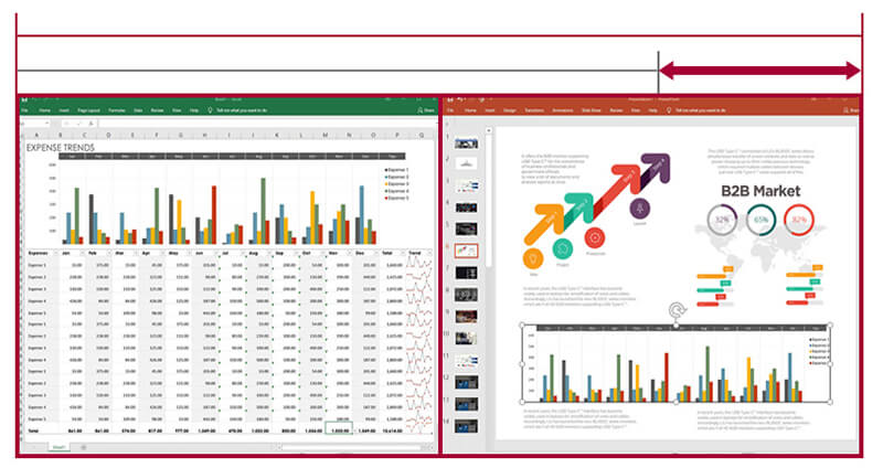 Позволяет одновременно работать с отчетами, располагая таблицы и слайды рядом, не используя Alt-tab для переключения.