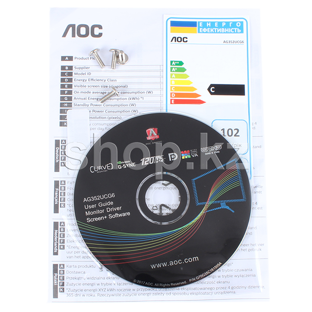 Благодаря минимальному радиусу изгиба экрана в 2000 мм профессиональный игровой монитор AG352UCG6 из серии AGON от AOC погружает геймера в самый центр игровой среды. Частота обновления 120 Гц и технология NVIDIA G-SYNC гарантируют максимально плавный игровой процесс, мгновенный отклик на действия пользователя и качественную графику, минимизируя разрывы кадров, дрожание и задержки изображения. Благодаря экрану формата UltraWide QHD с разрешением 3440 x 1440 пикселей игровые элементы словно оживают на широком 35-дюймовом экране (88.9 см), поражая четкостью и реалистичностью изображения. Досконально продуманные настройки монитора предлагают геймеру дополнительные преимущества, например, функцию AOC Shadow Control, которая позволяет пользователю избирательно осветлять слишком тёмные участки изображения и затемнять слишком светлые, не затрагивая общее качество изображения на экране. Кроме того, модель AG352UCG6 обладает целым рядом других полезных дополнений, среди которых выдвижной держатель для наушников и удобная ручка для переноски, что делает этот монитор идеальным вариантом для поклонников киберспорта. Но это еще не все: внешний вид монитора теперь также зависит от ваших предпочтений – задайте свой тон светодиодной подсветки (красный, зеленый или синий) на задней панели и в нижней части рамки AG352UCG6. Эргономичная подставка с регулировкой высоты, угла наклона и поворота экрана обеспечит максимально комфортное положение пользователя, оберегая его от болезненных ощущений в области спины. Кроме того, во избежание переутомления глаз пользователя монитор оснащен защитной технологией AOC Flicker-Free, которая регулирует яркость дисплея при помощи системы подсветки с постоянным током, устраняя мерцание экрана. И наконец: дополнительный режим работы Low Blue Light позволяет снизить интенсивность потенциально опасных коротких волн в синей части спектра.