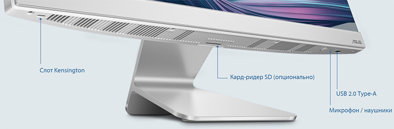 Благодаря входу HDMI моноблок ASUS A3402 можно использовать для ноутбука, мобильного гаджета, игровой консоли или телевизионной приставки в качестве внешнего дисплея с колонками. Также имеются четыре порта USB 3.2 Gen1 для периферийных устройств, видеовыход HDMI для дополнительного монитора и слот SD для карт памяти. Кроме того, для защиты от кражи моноблок оснащается слотом кенсингтонского замка.