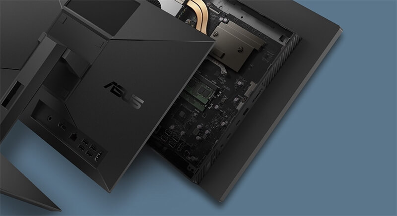 Подставка легко отсоединяется от корпуса, открывая доступ к оперативной памяти и накопителям. Таким образом, пользователь может обновлять или заменять эти компоненты, не разбирая весь моноблок.