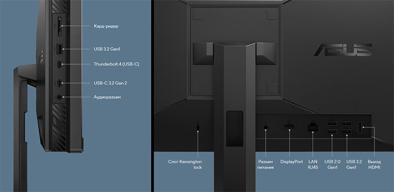 Для продуктивной работы часто требуется подключать всевозможное периферийное оборудование, поэтому моноблок ExpertCenter E5 AiO 24 предлагает множество интерфейсных портов. Используя видеовыходы HDMI, Thunderbolt 4 и DisplayPort, можно организовать конфигурацию из четырех дисплеев с разрешением до 4K – отличное решение для многозадачного режима! Подключение к беспроводным сетям осуществляется посредством модуля Wi-Fi 5, а для чтения карт памяти имеется встроенный кард-ридер.