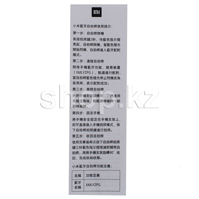 Монопод для селфи Xiaomi Mi Bluetooth Selfie Stick дарит своему обладателю уникальную возможность наслаждаться моментами не только здесь и сейчас, но и сохранять их в памяти. Не отказывайте себе в удовольствии сделать фото, теперь воспоминания остануться с Вами на многие годы.