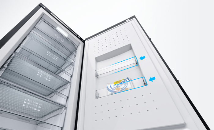 Охлажденный воздух внутри морозильника распределяется равномерно и быстро, и все свежие продукты замораживаются более интенсивно и эффективно, а значит, сохраняют свои питательные свойства и витамины надолго.