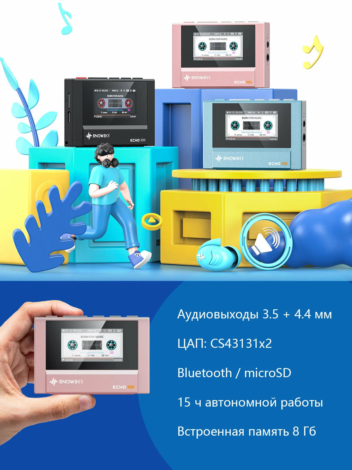 SNOWSKY ECHO MINI — это ультракомпактный аудиоплеер с двойным ЦАП, разработанный для тех, кто хочет получить максимум качества в минимальном форм-факторе.