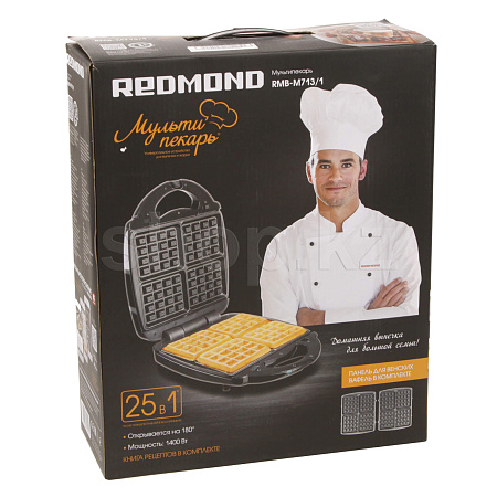 Многофункциональный прибор «Мультипекарь» REDMOND RMB-M713/1 заменит сразу несколько устройств на кухне: бутербродницу, вафельницу, контактный гриль, пончик-мейкер, тостер и другие. Установите в прибор одну из 25 разработанных сменных пресс-форм и готовьте ароматную домашнюю выпечку, а также сытные горячие блюда на завтрак, обед или ужин.