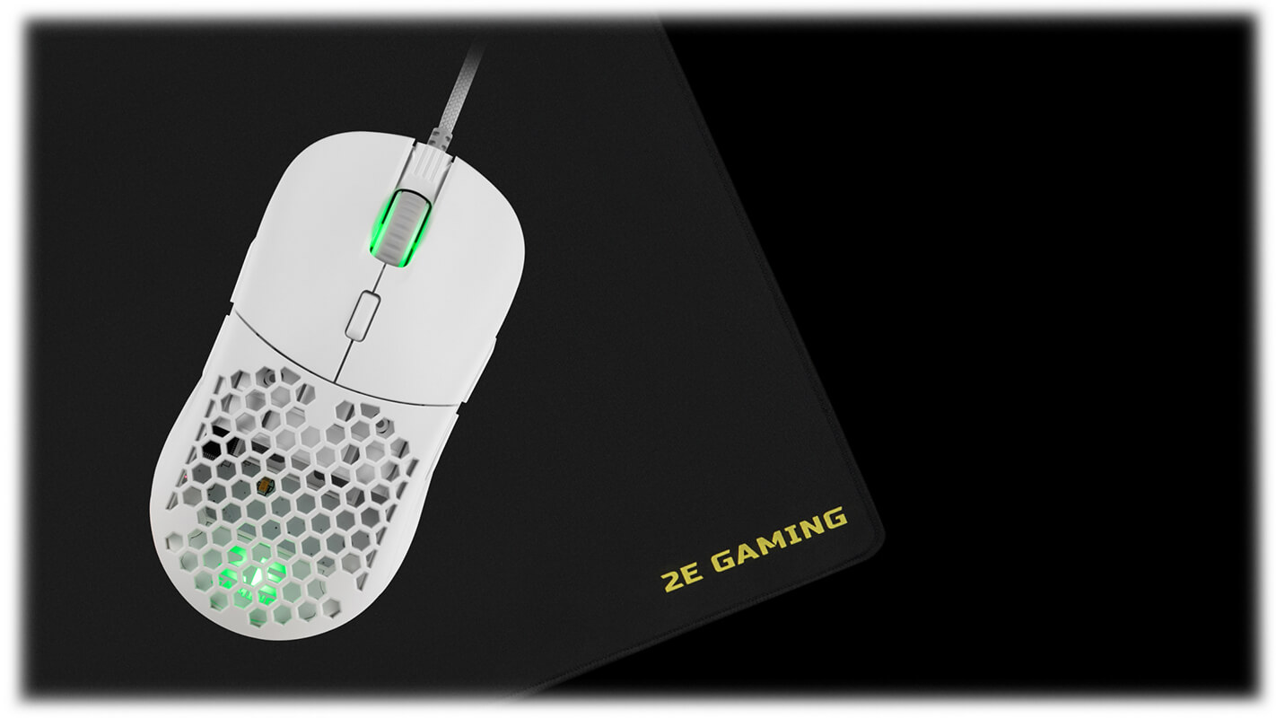 Но перфорация – это не просто дизайнерский прием. Кроме декоративной функции, она снижает вес, улучшает вентиляцию ладони и хват. Подсветка в 2E Gaming HyperDrive Pro реализована аккуратно и имеет 10 сценариев и огромное количество цветов и оттенков.