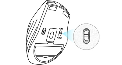Переключатель питания вкл. / Выкл. Кнопка переключения на задней панели делает эту беспроводную мышь идеальным помощником в дороге. |