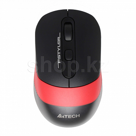 Беспроводная мышь A4Tech Fstyler FG10 - это компактная модель, подходящая для работы как левой, так и правой рукой. Ее корпус выполнен из качественного АВS-пластика с прорезиненной полоской красного цвета, препятствующей скольжению. Из такого же материала выполнено и колесо прокрутки. На нижней поверхности есть отсек для пальчиковой батарейки и USB-приемника.