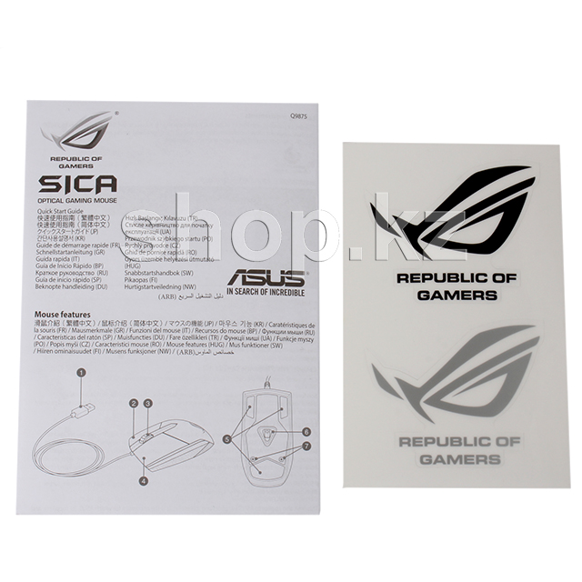 Оптический датчик Asus ROG Sica имеет разрешение 5000 точек на дюйм, частоту опроса 1000 Гц и способен отслеживать перемещения со скоростью до 130 дюймов в секунду (3.3 м/с) с ускорением до 30g. Мышь подключается к компьютеру с помощью двухметрового USB-кабеля с позолоченными контактами.