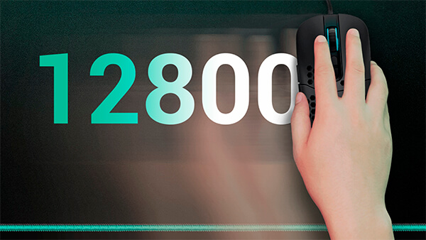 Высокоточный оптический датчик с разрешением 12 800 точек на дюйм, обеспечивающий высокую скорость и точность отслеживания, предназначен для динамичных игр FPS и MOBA высокого уровня.