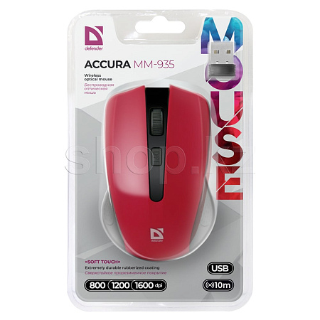 Мышь средних размеров. 3 уровня смены разрешения (800/1200/1600 dpi). Прорезиненная поверхность.