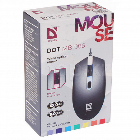 Defender Dot MB-986 - стандартная мышь с нерегулируемой подсветкой и эргономичным рифленым колесом прокрутки.