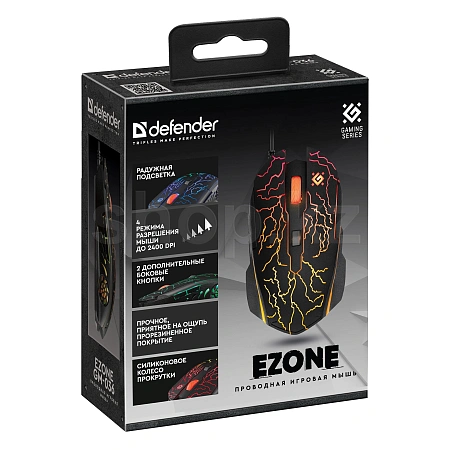 Проводная игровая мышка с радужной подсветкой. Достоинства модели: силиконовое колесо прокрутки, 2 дополнительные боковые кнопки, прочное прорезиненное покрытие корпуса, а также возможность выбора оптимального режима DPI от 800 до 2400 точек на дюйм.