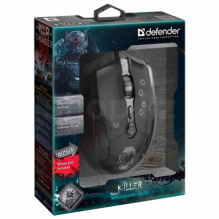 Проводная игровая мышь Defender Killer GM-170L - поставляется с ковриком и промо-кодом для игры War Thunder.