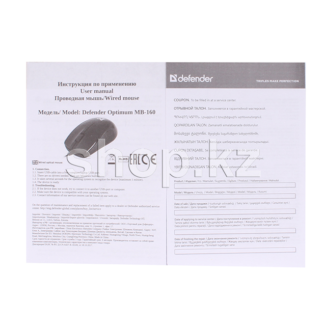 Мышь Defender Optimum MB-160, Black, USB