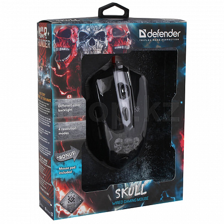Defender Skull GM-180L, Black, USB тінтуірі + тінтуір төсеніші