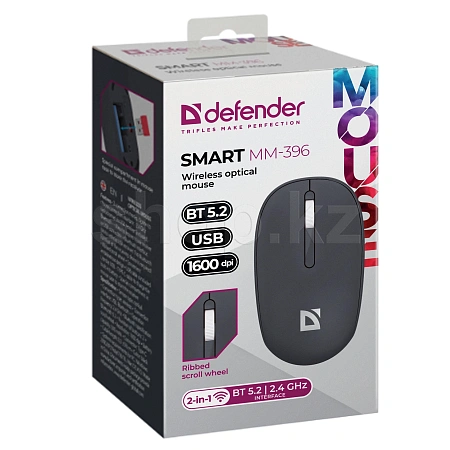 Беспроводная мышка с симметричной формой, удобной для работы любой рукой. Мышка Smart MM-396 имеет 2 режима подключения: по радиоканалу 2.4 ГГц (через USB-адаптер) или по Bluetooth (не требует USB-адаптера). Также мышь имеет прорезиненное колесо прокрутки и встроенный аккумулятор.
