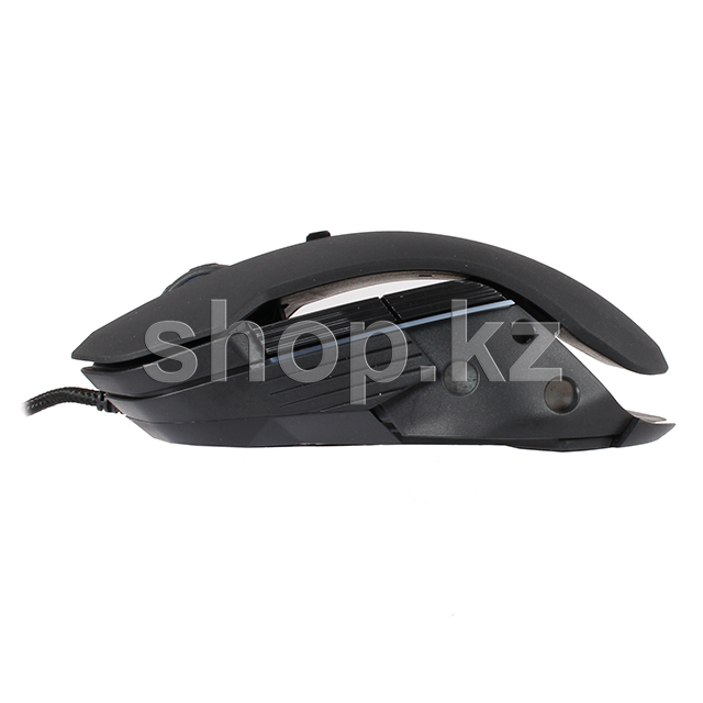 Оптический сенсор, с возможностью менять разрешение мыши в пределах 1000-10000 dpi при помощи кнопки "DPI" около колёсика, позволяет придать курсору необходимую точность позиционирования. Каучуковое колесо прокрутки обеспечивает точность и не допускает скольжения пальца. Рельефные вставки по бокам мыши позволяют более уверенно держать в руке и не дают ей выскользнуть из ладони.