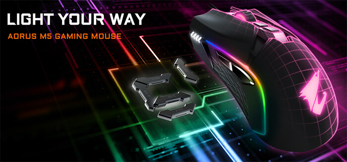 Игровая компьютерная мышь Aorus M5 от Gigabyte с оптическим разрешением в 16000 dpi и четырьмя программируемыми кнопками способна впечатлить любого игрока. Модель подключается к порту USB и имеет провод длиной 1.8 метра.