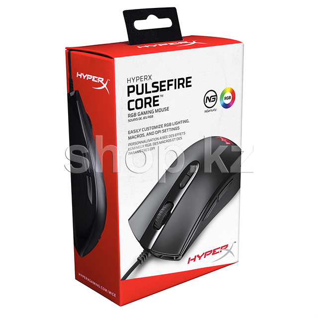 Мышь HyperX Pulsefire Core предоставляет все самое необходимое геймерам, которые хотят получить надежную и удобную проводную мышь с RGB-подсветкой. Оптический датчик Pixart 3327 обеспечивает точный и плавный трекинг без аппаратного ускорения и имеет нативные настройки разрешения до 6 200 DPI (точек на дюйм). Эргономичная мышь Pulsefire Core имеет рельефные боковые поверхности для захвата, чтобы ее можно было удобно держать и она не выскальзывала, а ее симметричная форма одинаково хорошо подходит как для хвата ладонью, так и для "когтевого" хвата. Она имеет высококачественные переключатели с четкой тактильной обратной связью, рассчитанные на 20 миллионов нажатий. Регулируйте подсветку, настройки разрешения и макросы для 7 программируемых кнопок при помощи ПО HyperX NGenuity и настраивайте свою мышь так, как вам удобно. Большие скользящие плоскости Pulsefire Core помогают добиться точного нацеливания, обеспечивая плавное, контролируемое перемещение, когда вы двигаете мышь.