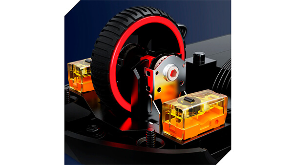 Конструкция с разделенной кнопкой дает единообразное ощущение всей кнопки, где бы вы ни щелкали, и помогает мыши обнаруживать как легкие щелчки, так и сильные.