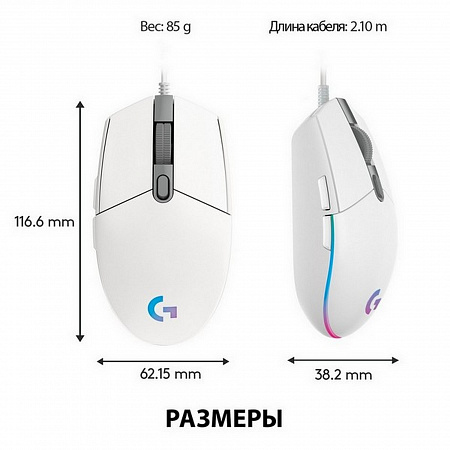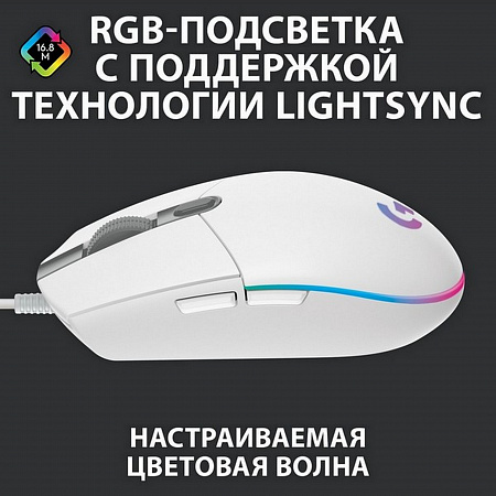 Вы можете выбрать любой цвет подсветки геймерской мышки LOGITECH G203 или мешать 3 цвета или настроить анимацию по сценарию. Технология LightSync позволяет синхронизировать подсветку всех устройств, так же реагировать на происходящее на экране или на звуковые эффекты.