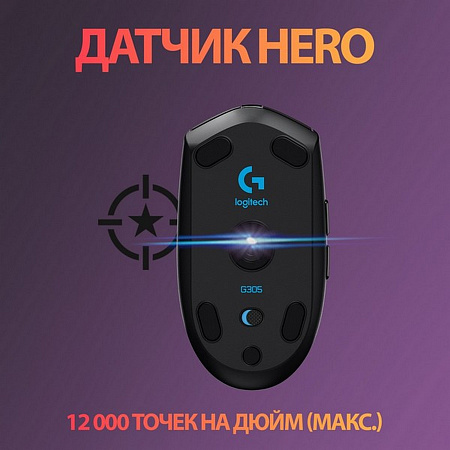 HERO — инновационный оптический датчик, разработанный группой Logitech G. Он отличается лучшей в своем классе производительностью и потребляет в 10 раз меньше энергии, чем аналогичные устройства предыдущего поколения. Датчик HERO обеспечивает исключительно высокую точность отслеживания и стабильно высокую производительность, сохраняя нулевые значения сглаживания, фильтрации и ускорения при любом уровне чувствительности в пределах от 200 до 12 000 точек на дюйм.