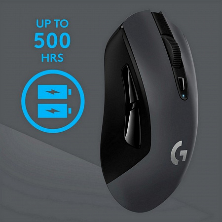 При использовании двух батареек типа AA мышь G603 обеспечивает до 500 часов непрерывной игры. Это в два раза превышает аналогичный показатель для моделей предыдущего поколения. Даже с одной батарейкой G603 с честью выдержит до 500 матчей в игре League of Legends. Размещение батареи с определенной стороны (справа или слева) позволяет дополнительно оптимизировать баланс.