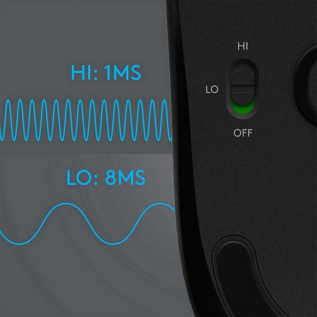 Эта модель предлагает два режима производительности, которые можно менять одним щелчком переключателя. В режиме высокой производительности мышь G603 работает на полную мощность. Благодаря технологии LIGHTSPEED частота опроса при этом составляет 1 мс, а заряда батареи хватает почти на 500 часов.