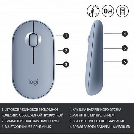 Logitech Pebble M350, Blue, USB тінтуірі