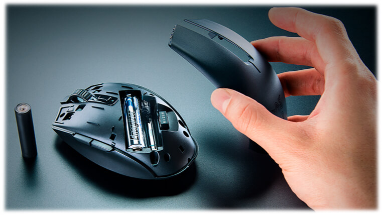 Для работы требуется только одна батарея AA или AAA*, мышка Razer Orochi V2 оснащена гибридным слотом для батареи, который оптимально расположен для сбалансированного распределения веса.