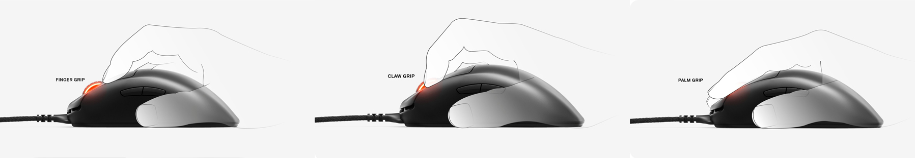 Эргономичная форма мыши Prime для правшей предназначена для требовательной игры и особенно удобна для тех, кто использует стиль захвата когтями или кончиками пальцев.