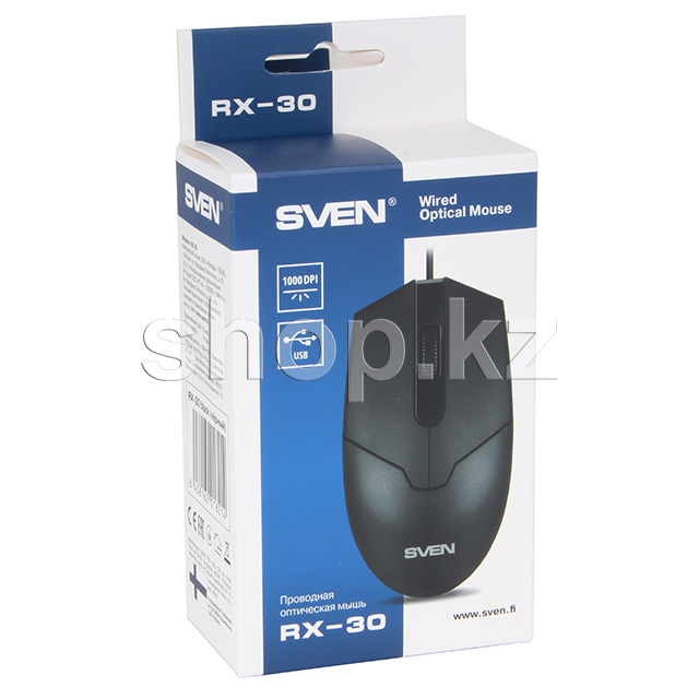 Sven RX-30 - стандартная проводная оптическая мышь симметричной формы.