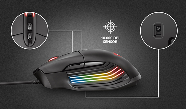 С DPI до 10.000 вы будете быстрее молнии. Игровая мышь Trust GXT 940 Xidon RGB создана специально для скорости. Используйте более высокие настройки DPI для быстрого исследования вашего окружения или замедляйте его, чтобы делать точные снайперские выстрелы.