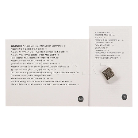 Расположен в батарейном отсеке мыши для удобства переноски и снижения вероятности ее потери.
