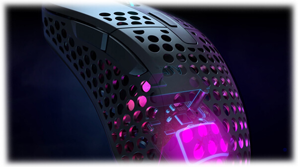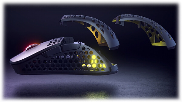 Беспроводная, при этом сверхлегкая. Благодаря конструкции, позволяющей регулировать распределение веса. Поскольку центр тяжести перемещается в зависимости от того, как ты держишь мышь, мы сделали возможным регулировать его по своему усмотрению. Перемести аккумулятор вперед или назад и ощути идеально сбалансированную мышь.
