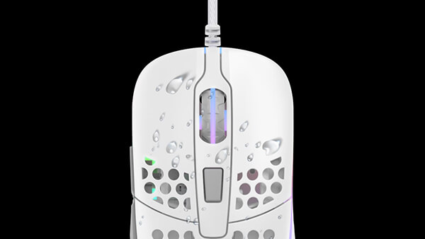Мы нанесли на внутреннюю часть мыши специальное покрытие, чтобы защитить компоненты от пыли, брызг и других аварий.