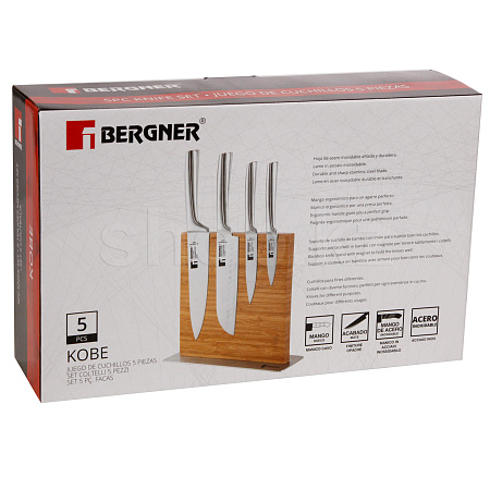 Лезвия ножей Bergner Kobe BG-39300-MM изготовлены из высококачественной пищевой нержавеющей стали, материала прочного, не подверженного коррозии. Рукоятки ножей не скользят.