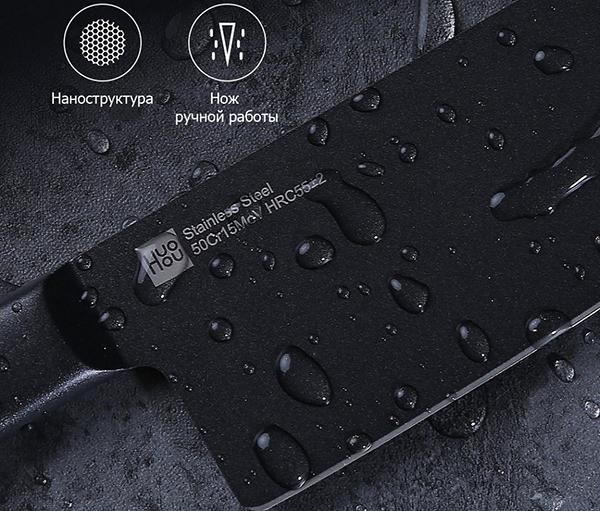 «Эффект лотоса» - это поистине шедевр технической мысли, в результате чего ни сок продуктов, ни жир, ни вода не задерживаются, а стекают с поверхности ножа. Кроме того, уникальное свойство самоочищения поверхности Huo Hou Black non-stick, даже если загрязнение очень сильное, позволяет легко очистить изделие до первоначального идеального состояния.