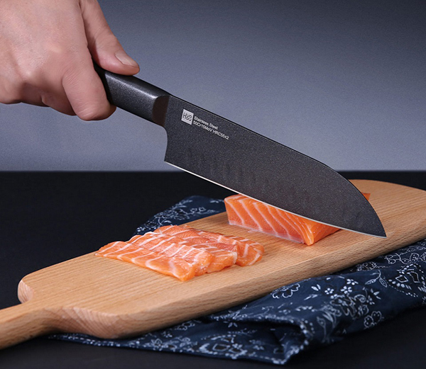 Ножи Huo Hou Black non-stick обладают особой конструкцией, которая помимо дополнительной прочности, обеспечивает удобство использования ножа. Нет необходимости применять значительные усилия при нарезании даже твердых продуктов питания: сыра, мяса, овощей и т.д. Ведь идеально сбалансированные элементы конструкции, позволили правильно сосредоточить центр тяжести, в результате чего нож станет, словно продолжением руки и «сольется» с ней в одно целое.