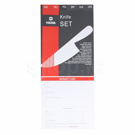 Кухонные ножи Vinzer изготовлены из высокоуглеродистой стали, которая обеспечивает высокие режущие свойства лезвия клинка. Твёрдость стали по шкале Роквелла 52 ± 2 HRC. Сечение лезвия ножей клинообразно, что позволяет режущей кромке оставаться острой продолжительное время.